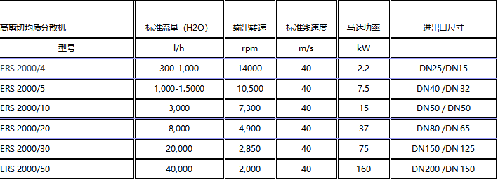 高的轉速和剪切率對于獲得超細微懸浮液是重要的。根據一些行業特殊要求,IKN在ER2000系列的基礎上又開發出ERS2000超高速分散機。其剪切速率可以超過14000 rpm,轉子的速度可以達到40m/s。在該速度范圍內,由剪切力所造成的湍流結合專門研制的電機可以使粒徑范圍小到納米級。剪切力更強,粒經分布更窄。由于能量密度極高,無需其他輔助分散設備。